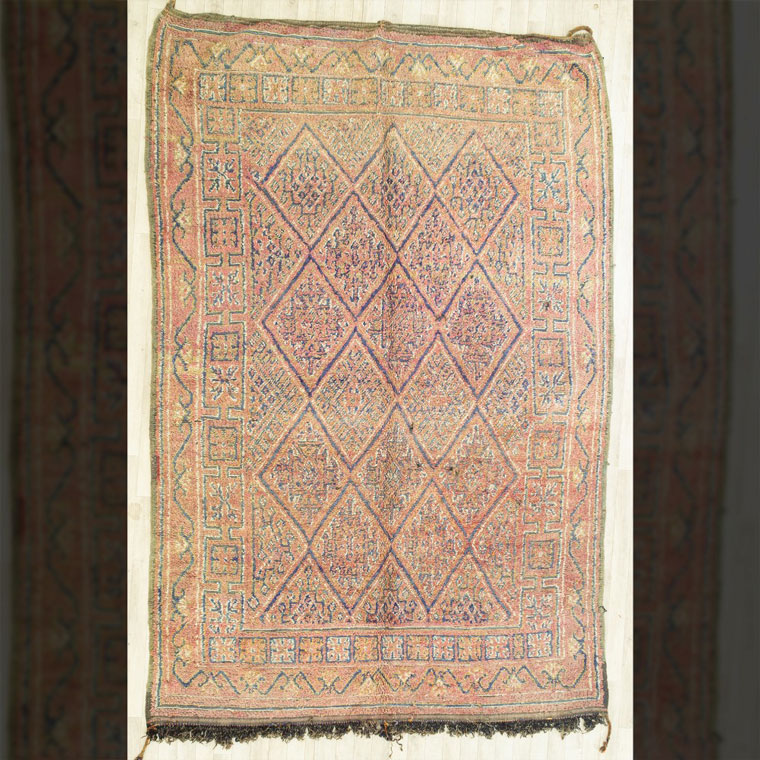 A cheerful vintage Moroccan rug made of excellent quality wool for a super comfortable feeling underfoot. This rug is a pretty old one but in perfect condition. It was handwoven by the female weavers in Morocco’s Atlas mountains. Exactly in the Boujaad tribe. It highlights symmetrical tribal motifs arranged over a faded brown background. Give your space a colorful traditional touch by adding this rug to it.